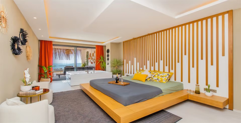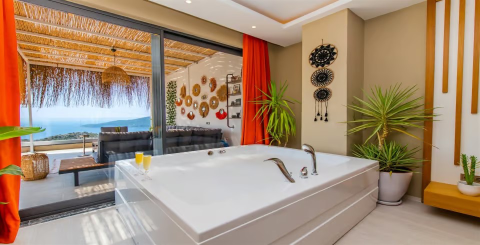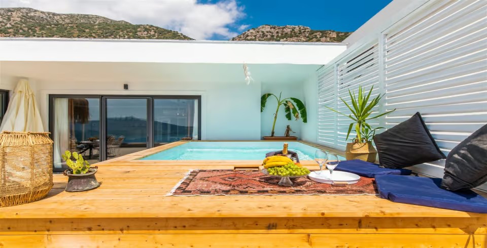 Daire Suite Palazzo, Kalkan Kördere mevkiinde konumlanan, serinleme havuzu bulunan şirin bir dairemizdir. Merkezi konumda bulunmasıyla araçsız tatil planı yapan ve tamamen geziye yönelen misafirlerimiz için oldukça uygun bir daire seçeneğimizdir. Misafirlerimiz günlük ihtiyaçlarını da kolaylıkla sağlayabilirler. Kalkan Kördere mevkiinde yer alan villamız, merkeze yakın bir konumda bulunmaktadır. Dünyaca ünlü Kaputaş Plajı'na yaklaşık 10-15 dk mesafededir. Gece hayatına ve şehir hayatına yakın konumda olmasıyla ön plana çıkmaktadır. Dairemiz tek yatak odalı olup, içerisinde çift kişilik yatak, banyo, jakuzi ve klima bulunmaktadır. Salon içerisinde ise mutfak, klima, televizyon ve oturma grubu yer almaktadır.