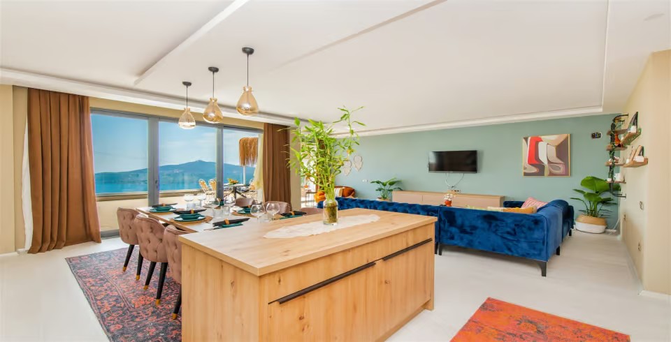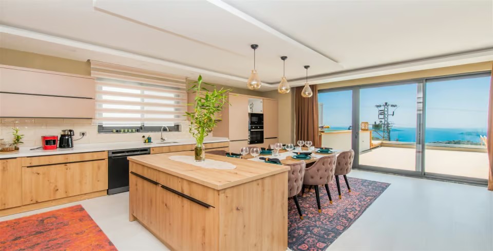 Mutfak: Buzdolabı, bulaşık makinesi, çamaşır makinesi, fırın, ocak, kettle, kahve makinesi, mikrodalga fırın, yemek masası, tencere, tabak, çatak-bıçak takımı vb. ekipmanlar mevcuttur.