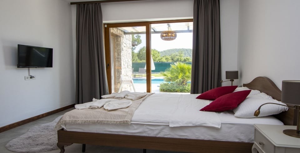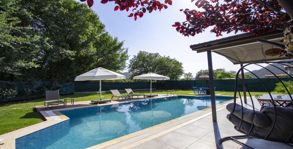 Villa Abelia, Fethiye’nin tarihi Kayaköy bölgesinde yer alan, 2 yatak odalı ve 4 kişi kapasiteli özel bir villadır. Her odasında banyo bulunan villa, küçük aileler ve balayı çiftleri için ideal bir tatil imkânı sunar. Geniş yüzme havuzu ve yemyeşil bahçesi, doğayla iç içe huzurlu bir konaklama deneyimi sağlar. Tam donanımlı mutfak, barbekü alanı, klima ve konforlu oturma bölümleri sayesinde tatilinizi ev rahatlığında geçirebilirsiniz. Taş ve ahşap mimarinin uyumu, villaya sıcak ve samimi bir atmosfer katarken, geniş terası ve şezlongları dinlenmek için keyifli alanlar sunar.