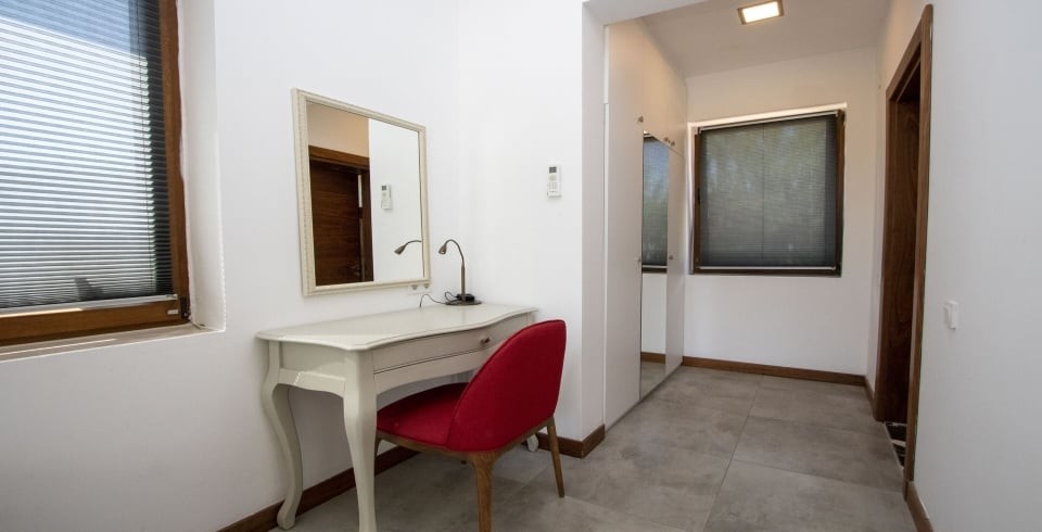 1.Yatak Odası:  1 adet çift kişilik yatak, komodin, klima, elbise dolabı, makyaj masası, banyo ve lavabo bulunmaktadır.
