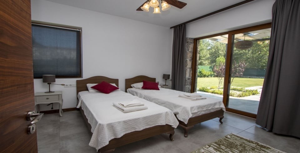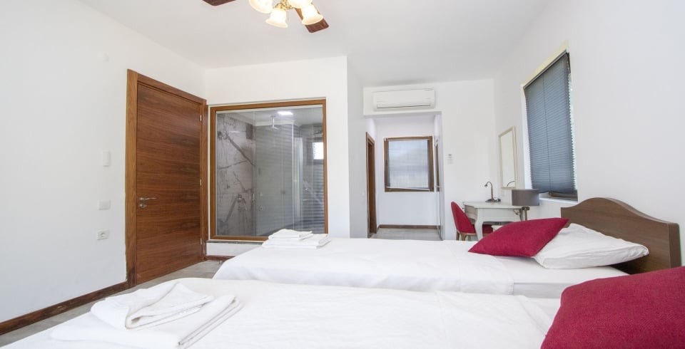2.Yatak Odası:  2 adet tek kişilik yatak, komodin, klima, elbise dolabı, makyaj masası, banyo ve lavabo bulunmaktadır.