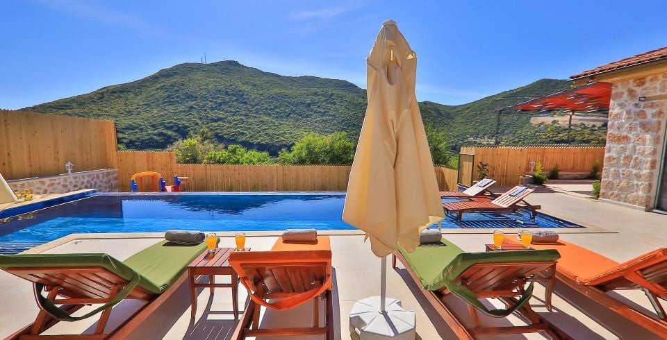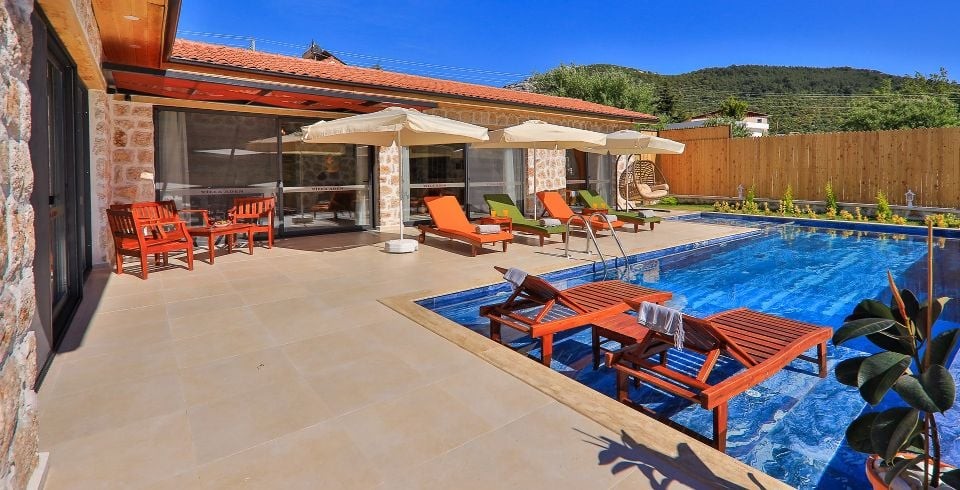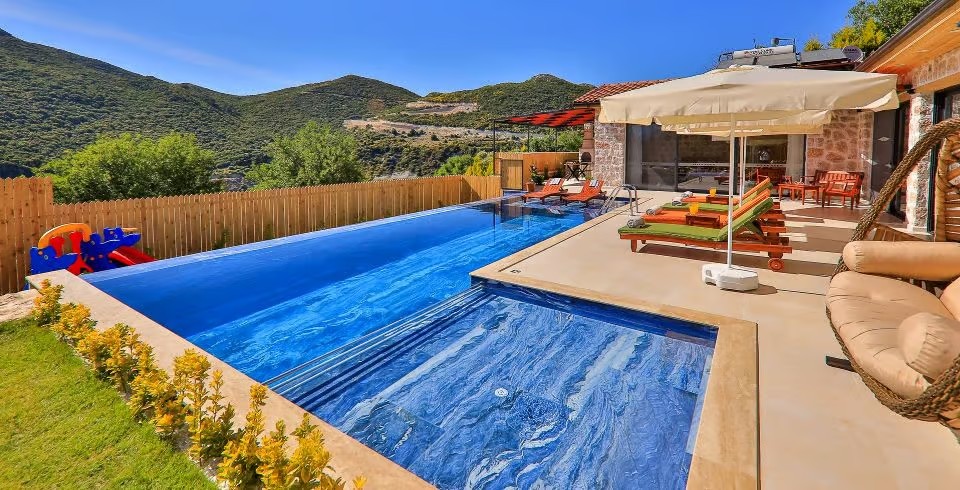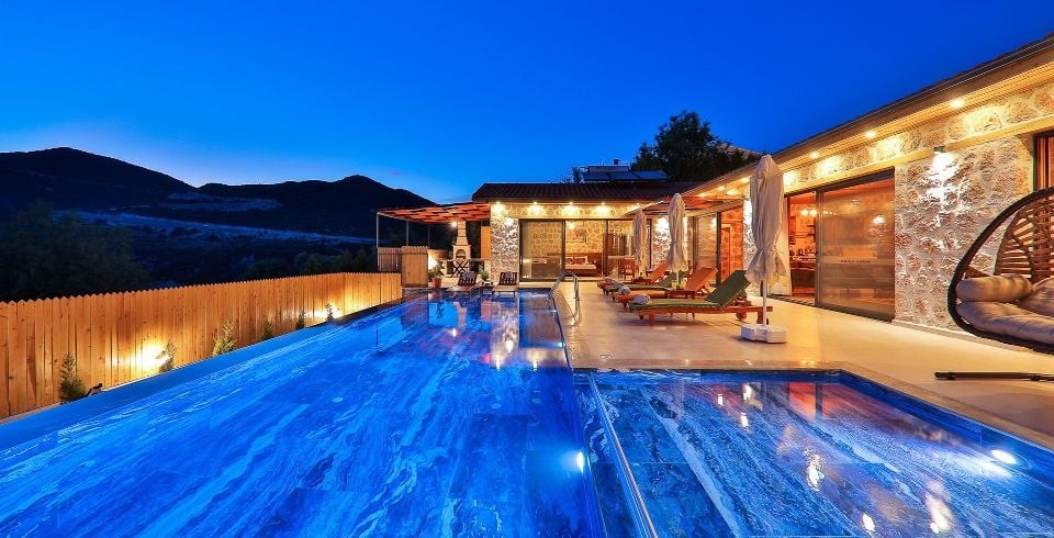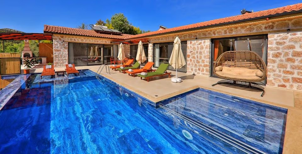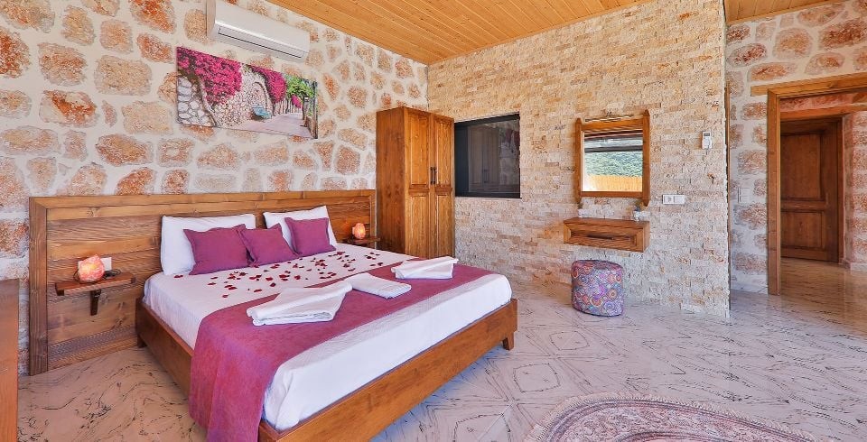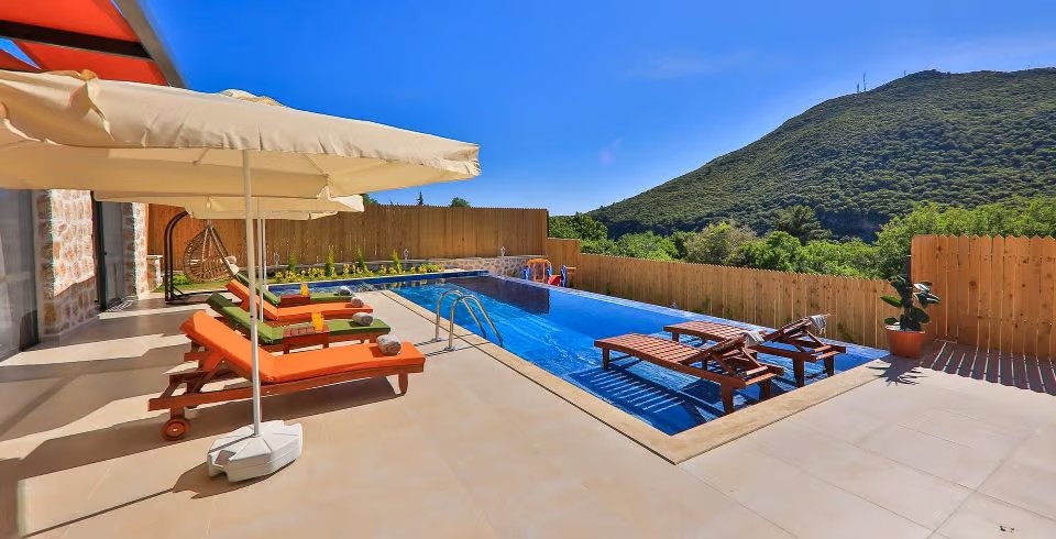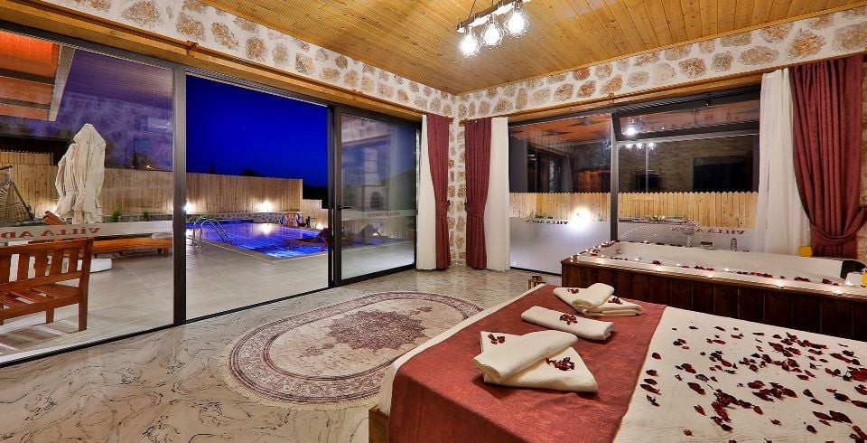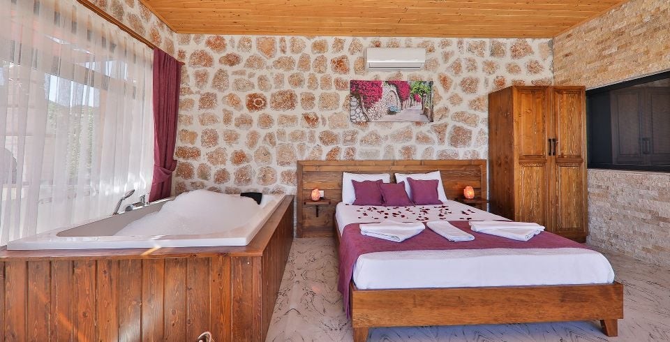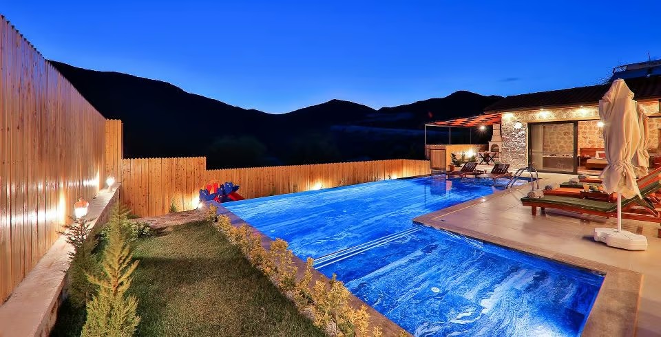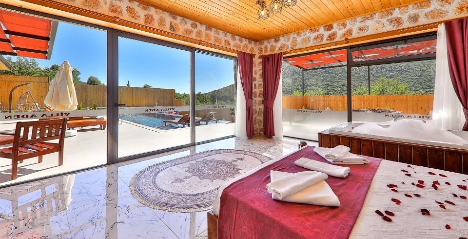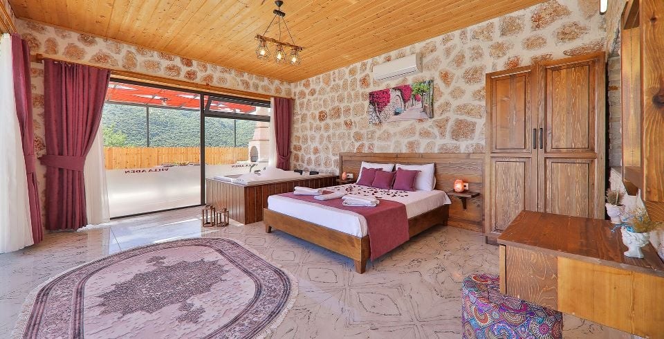 Kalkan Sarıbelen bölgesinde  bulunan 2 Yatak odalı 4 kişilik jakuzili olan villamız yeni yapılmış olup muhteşem doğa manzarasına sahiptir. Villamız 2021 yılında yapılmış olup lüks. Muhafazakar aileler uygun olarak dizayn edilmiştir. Taş mimari tasarımı ile adeta göz büyülemektedir konsepte ki villalarımız içerisinde bulunmaktadır. Villamız korunaklı ve muhafazakar ailelere ve balayı çiftleri için son derece ideal bir seçenektir.