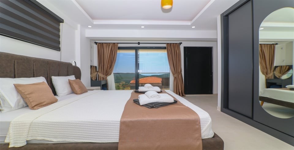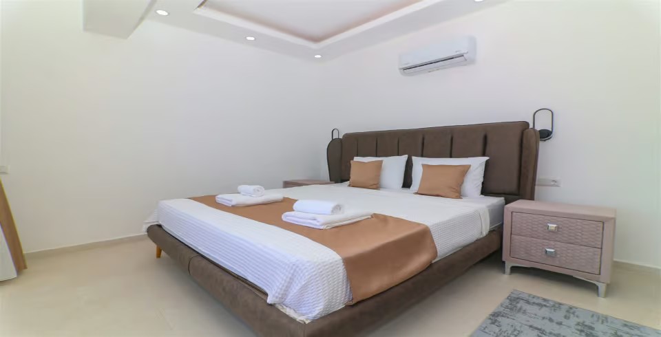 2. Yatak Odası : Klimalı suit aile yatak odası olup, 1 adet çift kişilik yatak , elbise dolabı , makyaj masası , komodin , banyo ve tuvalet bulunmaktadır. (Üst Kat)