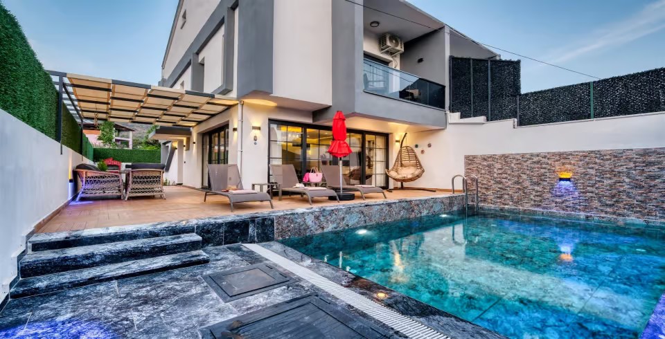 Villa Akasya Fethiye 2, Fethiye Karagedik bölgesinde lüks detayları bir araya getiren özel havuzlu ve jakuzili bir aile villasıdır. 3 yatak odası ve 3 banyosu ile 6 kişilik kapasiteye sahip olan bu villa, geniş ve bakımlı bahçesiyle ailecek keyifli vakit geçirmenize olanak tanır. Korunaklı havuz alanı, modern oturma grubu ve konforlu iç mekanıyla hem dinlenmek hem de eğlenmek isteyenler için idealdir.