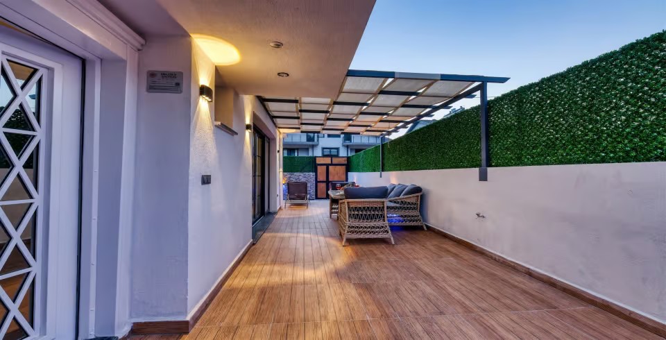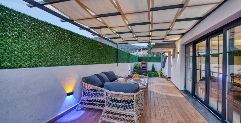 Havuz ve Bahçe: Özel yüzme havuzu, şezlong, şemsiye, bahçe mobilyaları, güneşlenme terası, bahçe salıncağı ve araç park alanı bulunmaktadır.
