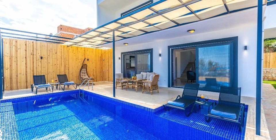 Havuz ve Bahçe:  Bahçede havuz, yemek masası, perguleli oturma gurubu ve sandalyeler, salıncak , barbekü, şezlong ve şemsiye bulunmaktadır. Havuz ve bahçe temizliği günlük olarak görevli tarafından düzeli yapılmaktadır.