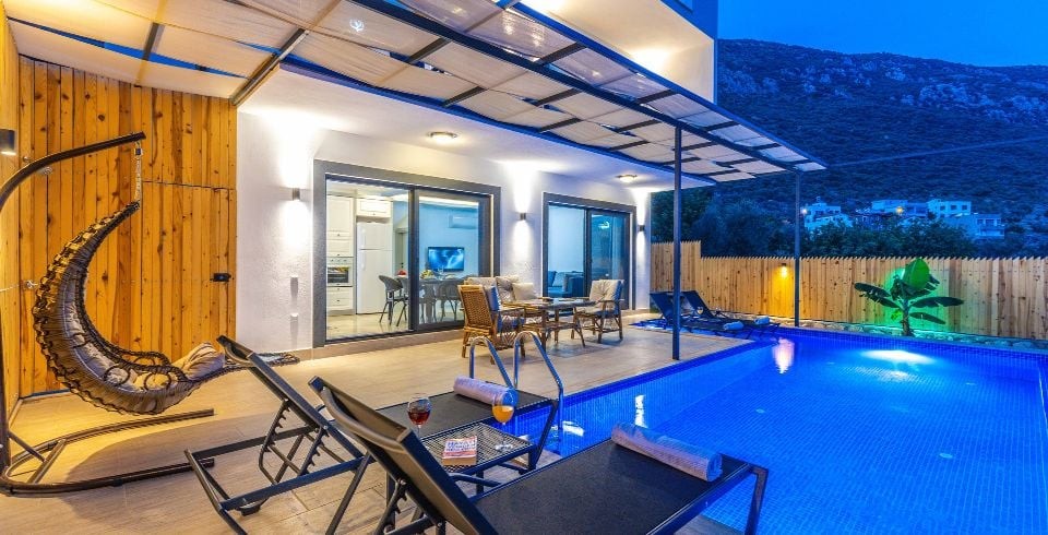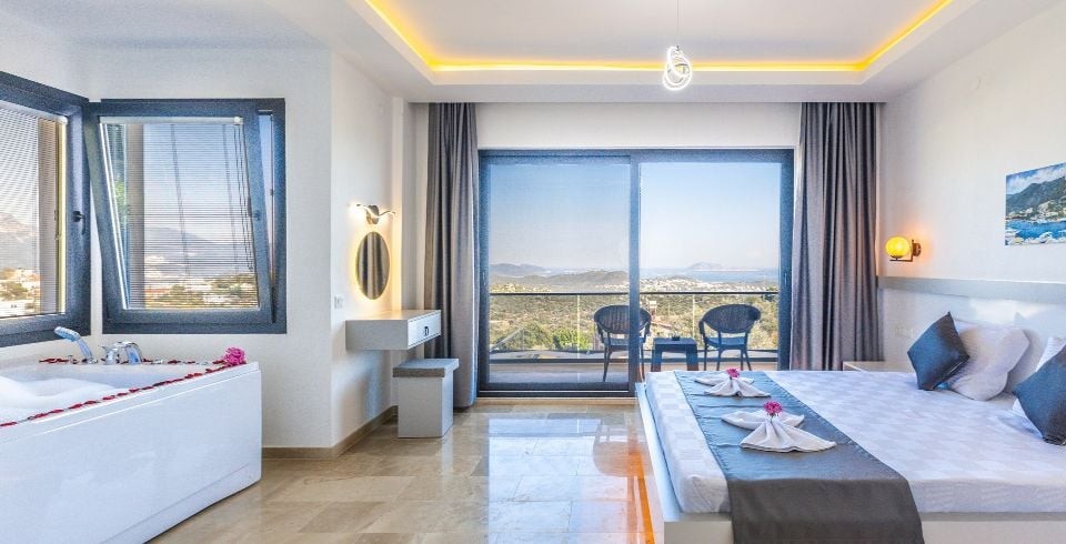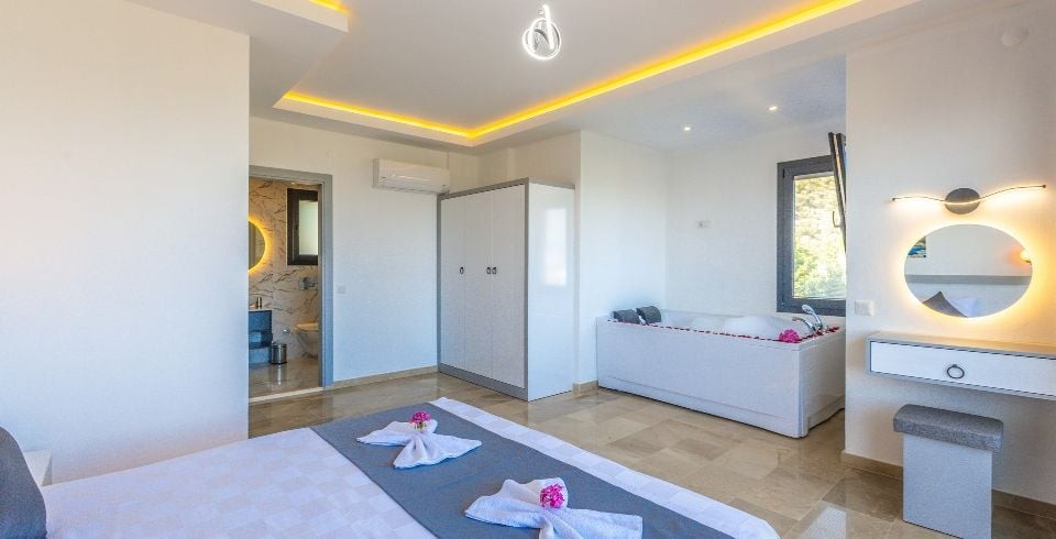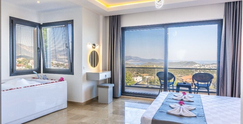 Villa Albedo Kaş Gökseki mevkiinde konumlandırılmış 2 yatak odalı 4 kişi konaklama kapasitesine sahiptir. Deniz manzaralı,  Havuz alanı korunaklı, Jakuzili villa kategorisinde yer almaktadır. Plaja ve şehir merkezine yakındır. Son derece modern ve lüks dizayn edilmiş villamız balayı için de uygundur.