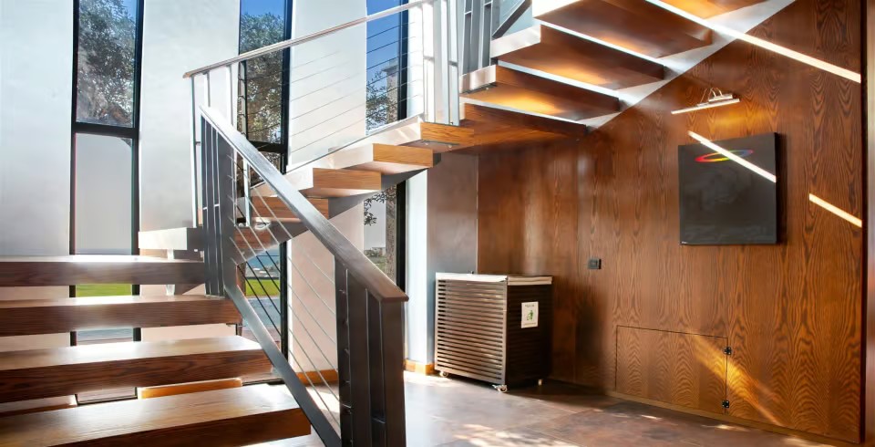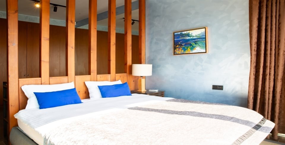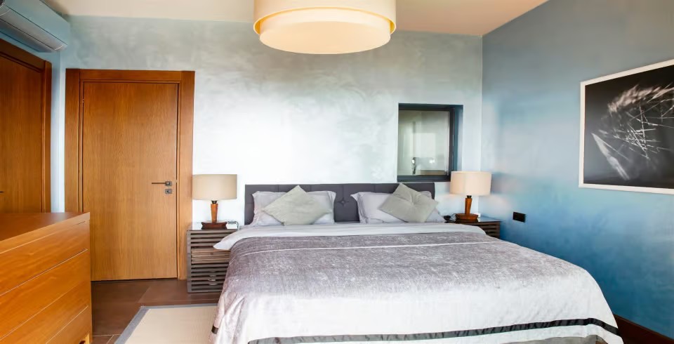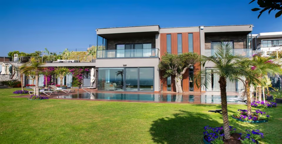 Dubleks villamızın giriş katında, ebeveyn banyolu ve deniz manzaralı 2 yatak odası bulunmaktadır. Alt katta, ebeveyn banyolu bir diğer deniz manzaralı yatak odası, açık plan salon, tam donanımlı mutfak ve yemek alanı mevcuttur. Bahçe ve havuz alanına doğrudan geçiş buradan sağlanır. Bahçenin yanında ise kendi mutfağına sahip çift kişilik yataklı bir yatak odası ve salonda bir adet çift kişilik duvar yatağı yer alır.