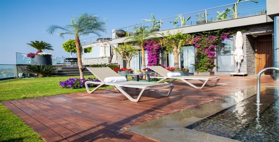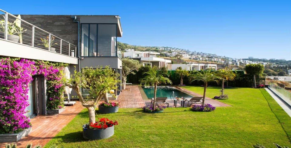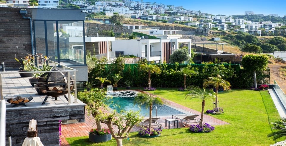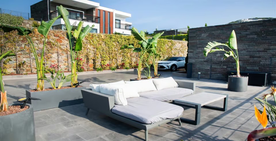 Bahçe : Bahçe içerisinde özel yüzme havuzu, şezlonglar, bahçe mobilyaları ve barbekü bulunmaktadır.