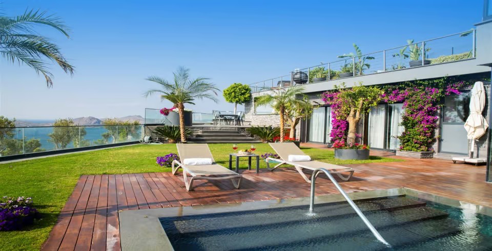 Bodrum Yalıkavak’ta bulunan, özel havuzlu ve muhteşem deniz manzaralı 4 yatak odalı lüks tatil villamızda gözlerden uzak, keyifli bir tatil sizleri bekliyor. 10 kişilik konaklama kapasitesine sahip olan bu villa, aileler ve arkadaş grupları için ideal bir seçenektir.
