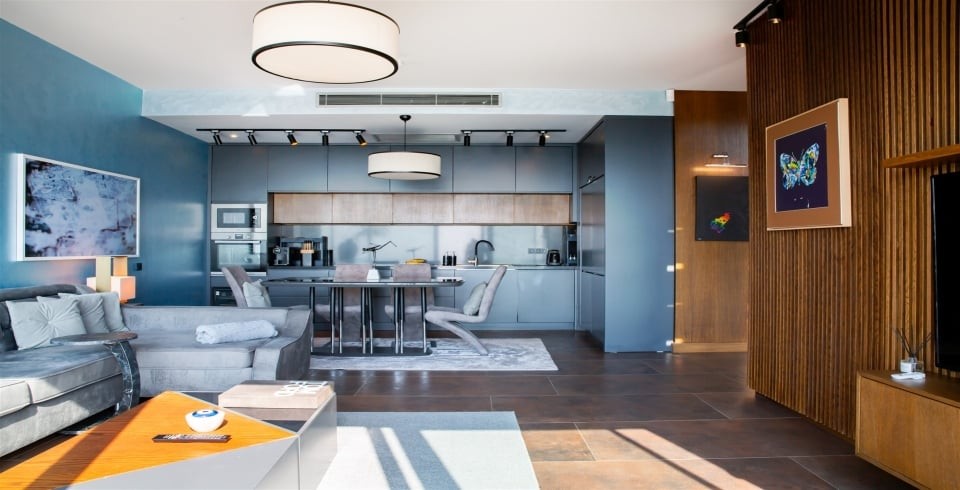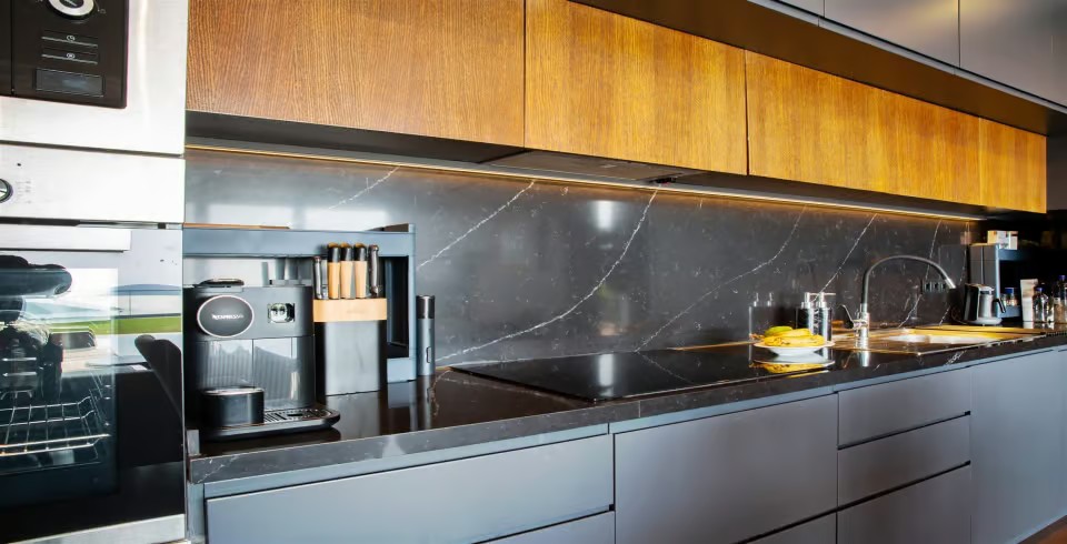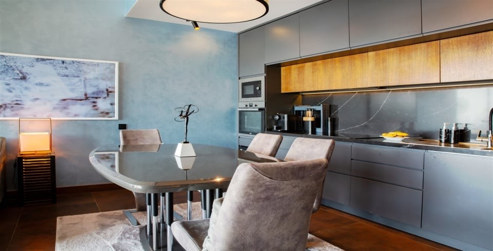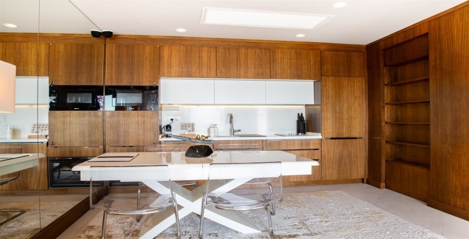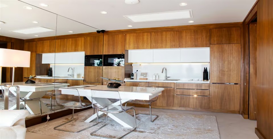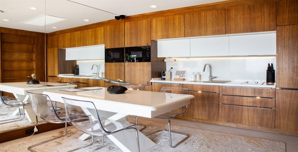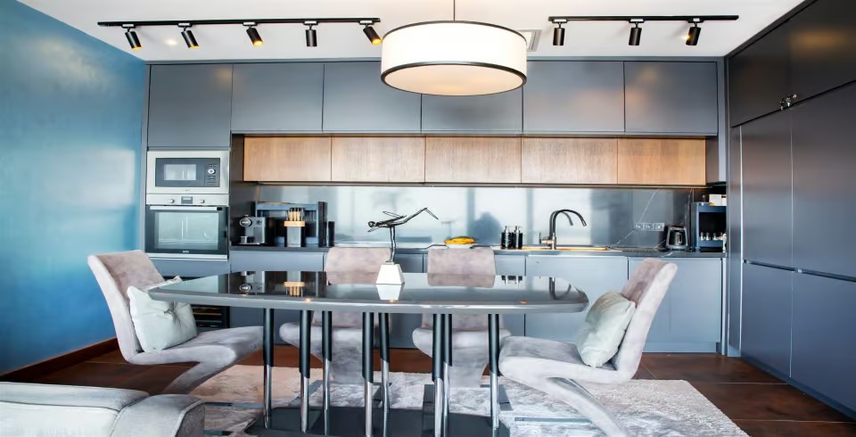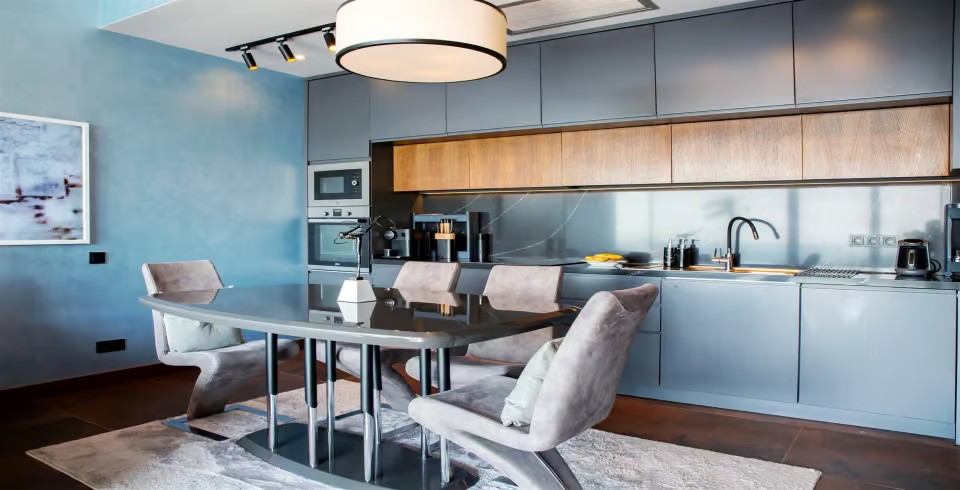 Mutfak : Modern Amerikan mutfakta yemek masası, buzdolabı, bulaşık makinesi, fırın, ocak, mikrodalga fırın, kahve makinesi, yemek takımları, çatal-bıçak takımları, tencere-tava setleri ve bardaklar mevcuttur.