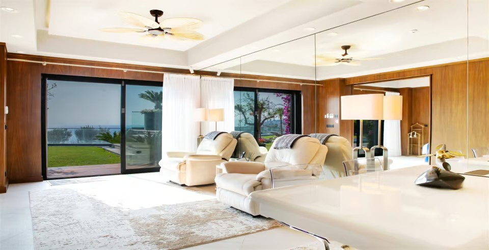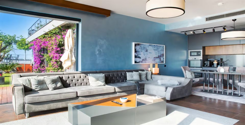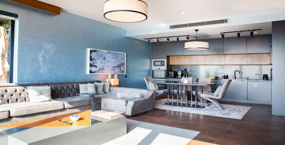 Salon : Salon içerisinde oturma grubu, TV, klima ve sehpa bulunmaktadır. Havuz terasına çıkış sağlanabilir.