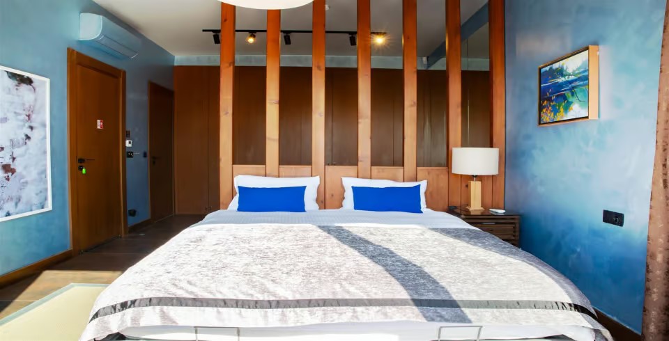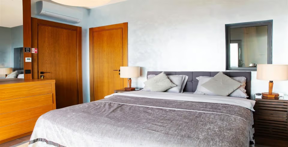 5. Yatak Odası: 1 adet çift kişilik yatak, klima, komodin, elbise dolabı, banyo ve tuvalet.