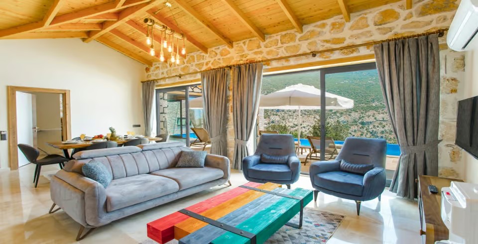 Salon : Villa Aleyna’nın salonunda sizi şık bir oturma grubu ile klima, televizyon, internet, uydu, koltuk, sehpa ile ferah bir salon bekliyor olacaktır. Havuz terasına çıkış yapılmaktadır.