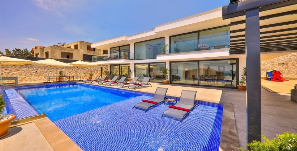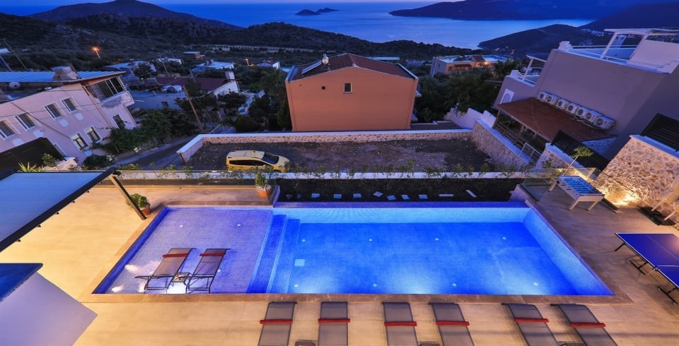 Kalkan Kördere Bölgesinde 3 yatak odalı 6 Kişilik Deniz Manzaralı Kiralık Lüks Tatil Villamızdır. Villamız muhteşem doğa ve deniz manzarasına sahip özel yüzme havuzu havuz terasında ise masa tenisi ve langırt bulunmaktadır. Villamız Kalkan merkeze ve Kalkan plajlarına yaklaşık olarak 7/8 dk. mesafede bulunmaktadır. Villamız 2020 yılında yapılmış oldukça lüks ve konforlu bir villadır. Villamızda tüm yatak odalarında jakuzi , TV banyo ve lavabo bulunmaktadır. Villamızın Havuz terasında tatil boyunca zaman geçirebilmek için masa tenisi ve langırt bulunmaktadır.