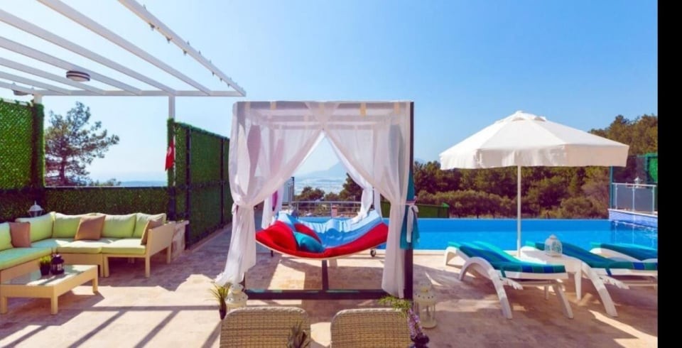 Villa Almira; Kalkan tatil beldesinin İslamlar Köyü’nde bulunan kiralık Villa Almira 6 kişi konaklama kapasitesine sahiptir. Kalkan merkeze araçla yalnızca 10 dakika uzaklıktadır. Uzaktan deniz manzaralı bu Kalkan villasının 3 odası da suittir. İki kat ve bir teras katına sahip olan villanın 2 adet jakuzisi, çocuk havuzu ve 70 m2’lik korunaklı havuzu bulunmaktadır.