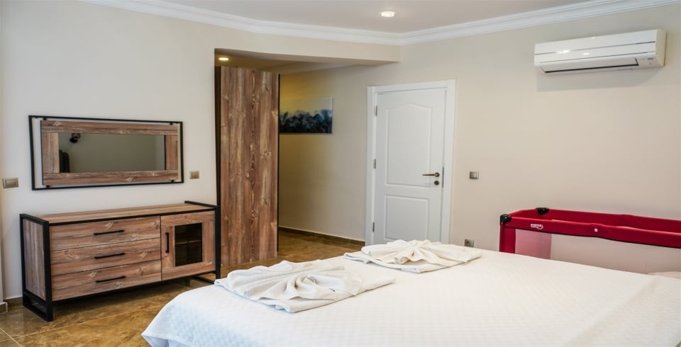 3. Yatak Odası : 2 Adet Tek kişilik yatak, gardırop, klima, komodin, makyaj masası, banyo-WC ve havuz terasına çıkış yer almaktadır.