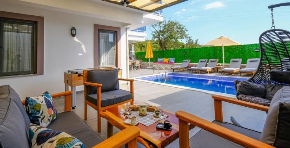 Havuz : Villamızın özel yüzme havuzu ve geniş ve ferah bir havuz terası bulunmaktadır. Aileniz ile birlikte rahat ve huzurlu bir tatil geçirebilirsiniz.