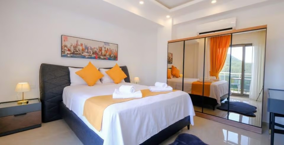 3. Yatak Odası : 1 adet çift kişilik yatak, klima, komodin, elbise dolabı, makyaj masası, banyo ve lavabo bulunmaktadır
