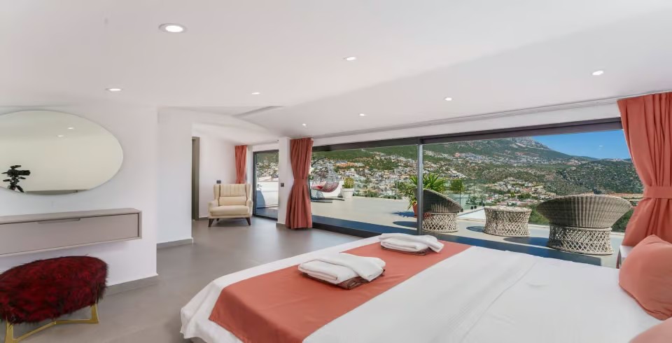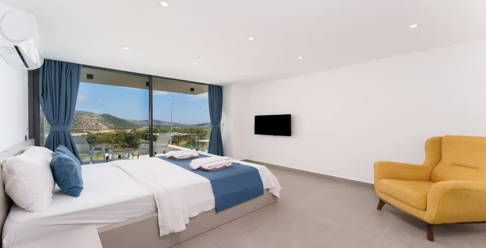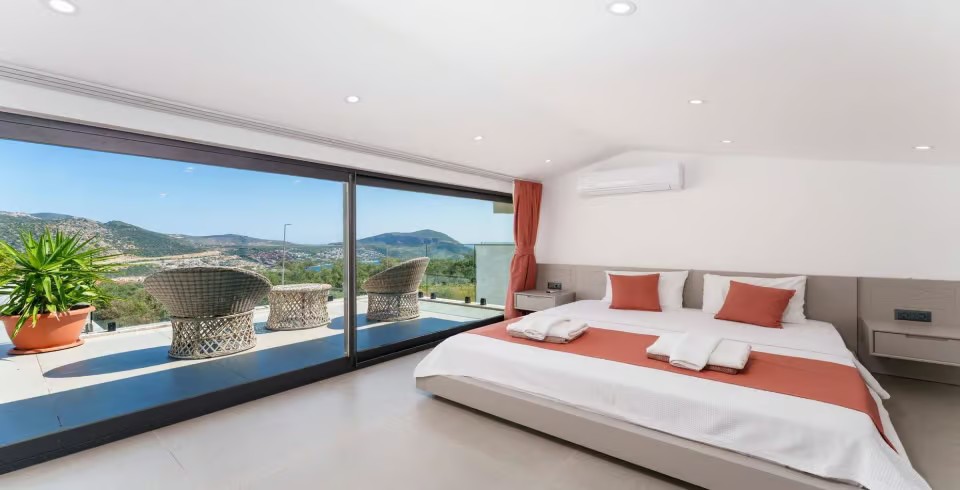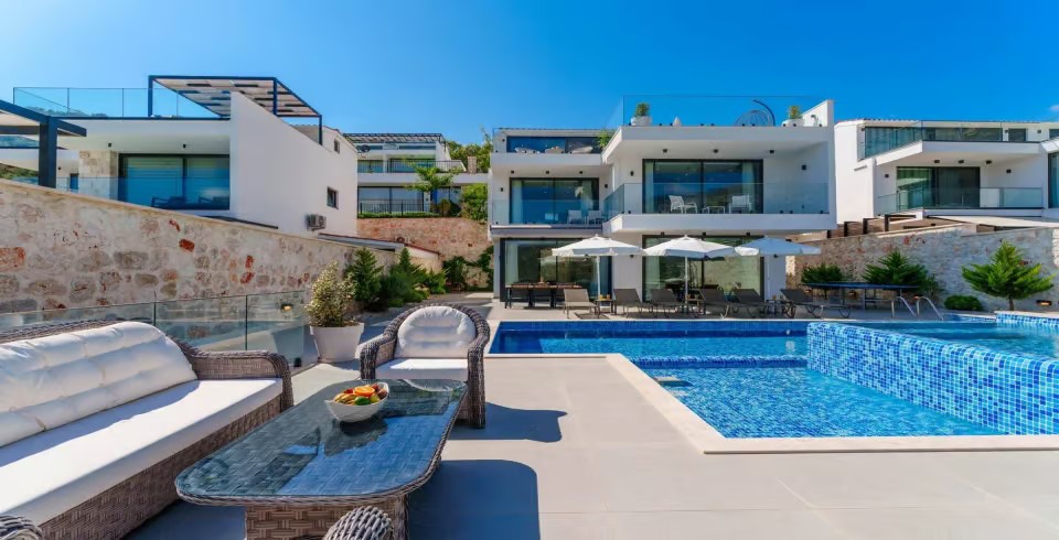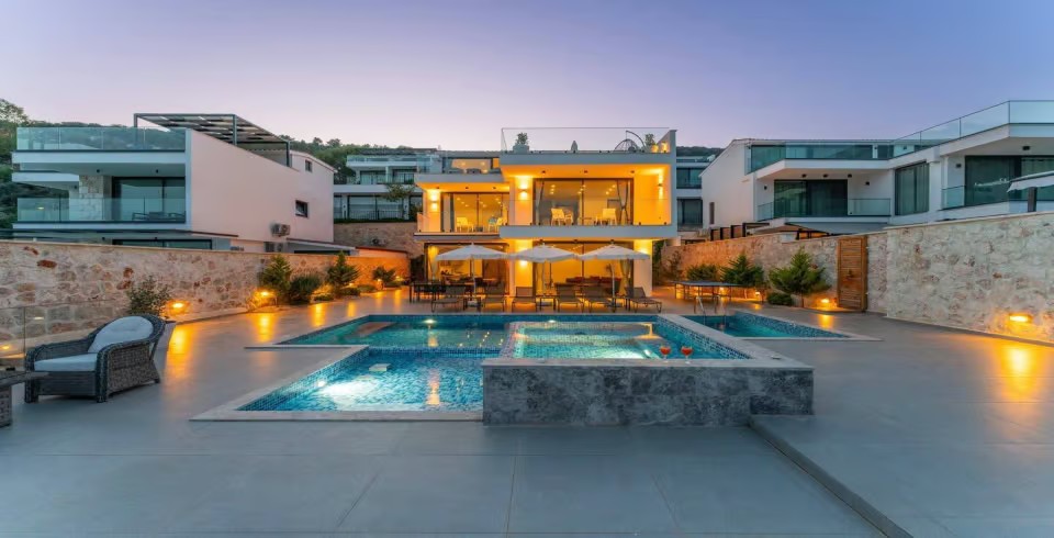 Kalkan’ın Ortaalan Mevkii'nde yer alan Villa Antares Premium, modern tasarımı, geniş yaşam alanları ve büyüleyici deniz manzarası ile unutulmaz bir tatil deneyimi sunuyor. 3 yatak odası ve 6 kişilik konaklama kapasitesi, şık ve konforlu detaylarla donatılmış iç mekânı sayesinde hem aileler hem de arkadaş grupları için ideal bir konaklama sağlıyor. Jakuzisi, günün stresini atmanız için rahatlatıcı bir deneyim sunarken, çocuk havuzu, minik misafirler için güvenli ve keyifli bir alan oluşturuyor.