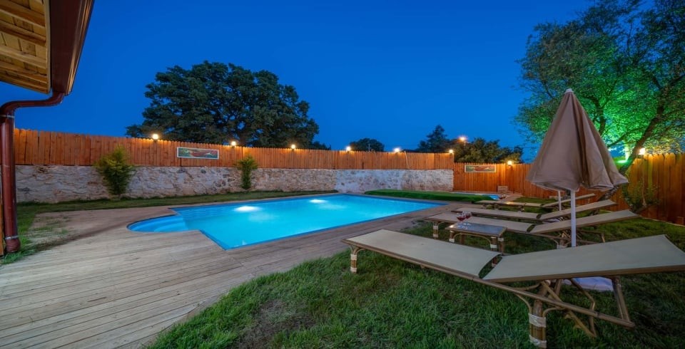 Havuz ve Bahçe: Oldukça geniş ve lüks bir havuza sahip bu villamızın havuz ölçüleri 4 Metre X 8 Metre genişliğinde olup, 1,5 Metre derinliğindedir.