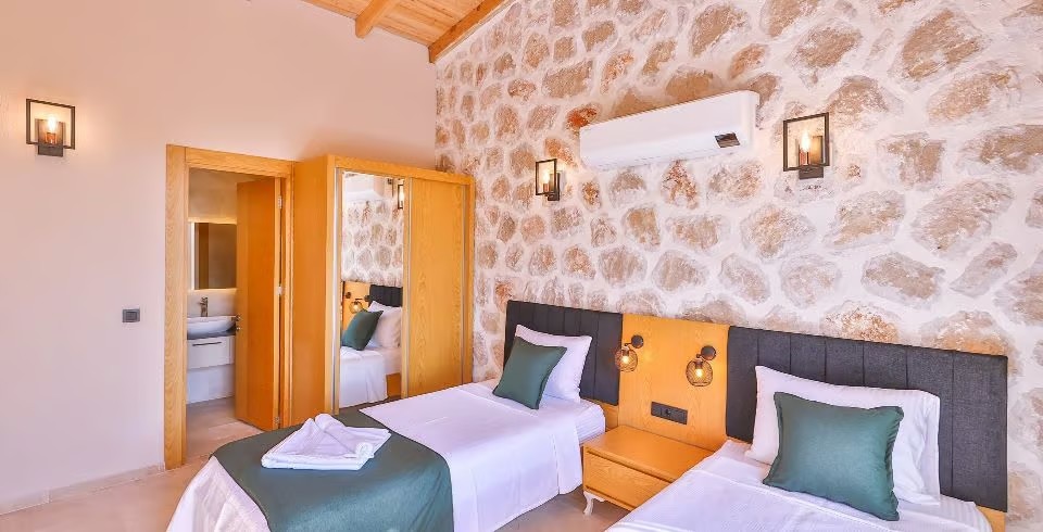 2.Yatak Odası: 2 adet tek kişilik yatak, komodin, klima, makyaj masası, LCD TV, elbise dolabı, banyo/WC ve bahçeye çıkış bulunmaktadır.