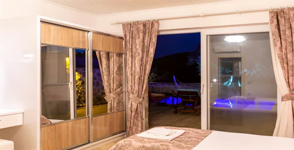 Kalkan Üzümlü mevkisinde bulunan Villa Araf, 2 yatak odası ile 4 kişi konaklama kapasitesine sahiptir. Çekirdek aileler ve balayı çiftleri için uygun olan villamızın ebeveyn yatak odasında jakuzi bulunmaktadır. doğa içerisinde gözlerden uzak keyif solu bir tatil geçirebileceğiniz villamız muhafazakar ailelerimiz için de oldukça uygun bir seçenektir.