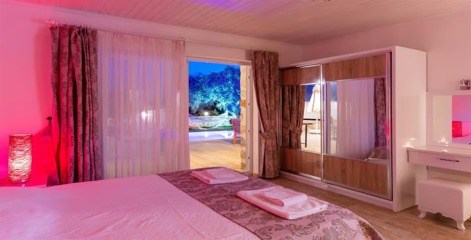 1.Yatak Odası: Çift kişilik yatak , jakuzi , klima , komodin , elbise dolabı , makyaj masası , banyo ve lavabo bulunmaktadır.