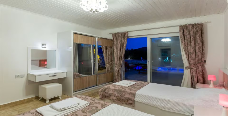 2.Yatak Odası: 2 adet tek kişilik yatak , klima , komodin , elbise dolabı , makyaj masası, banyo ve lavabo bulunmaktadır.