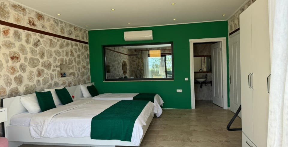1. Yatak Odası : Çift kişilik yatak ,klima, jakuzi, komodin, elbise dolabı, makyaj masası banyo ve tuvalet bulunmaktadır.