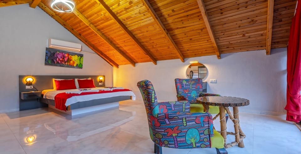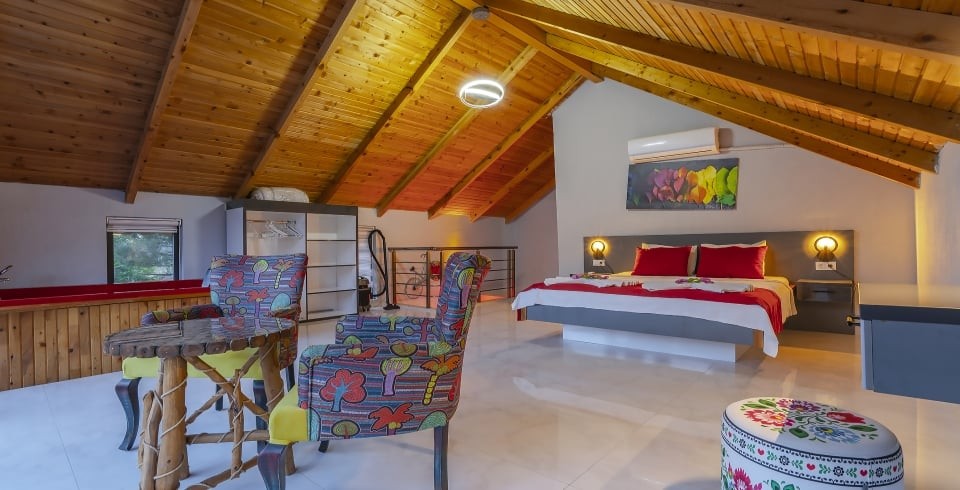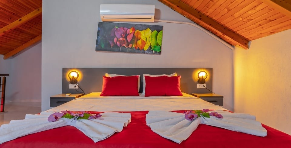 1. Yatak Odası : Çift kişilik yatak ,klima, jakuzi, komodin, elbise dolabı, makyaj masası banyo ve tuvalet bulunmaktadır. 2. Kattadır.