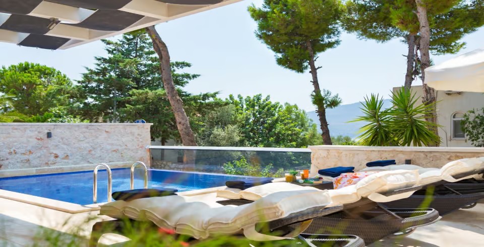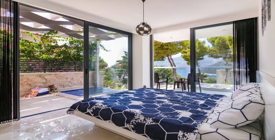 Villa Arcadia, Kalkan’ın Kalamar bölgesinde yer alan modern mimarili lüks bir villadır. Dört yatak odası ve dört banyosu ile sekiz kişilik konaklama kapasitesi sunar. Her odada en-suite banyo bulunmakta olup, bazı odalar özel balkon ve deniz manzarasına sahiptir.