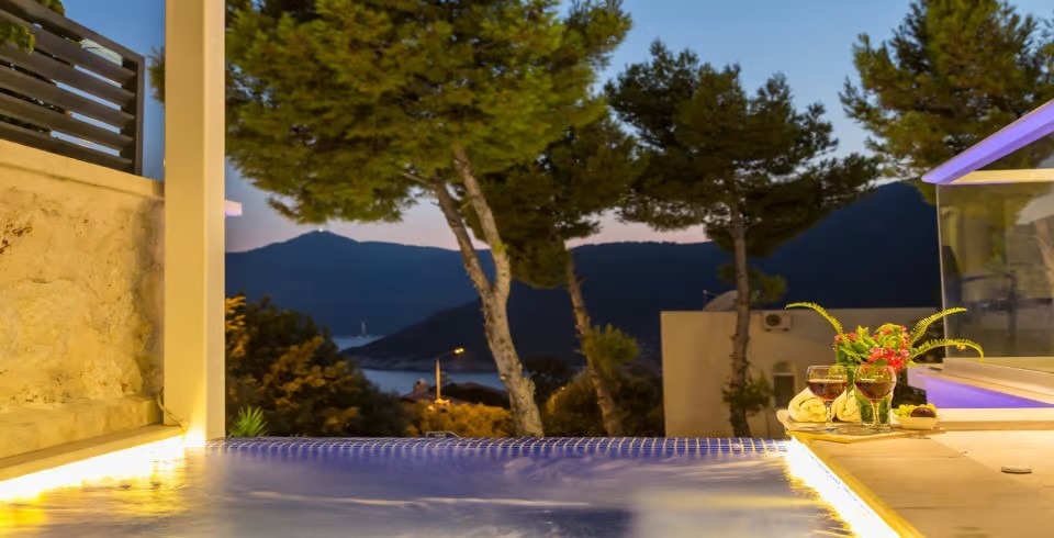 Plaj kulüplerine yürüyerek 5 dakika, Kalkan merkezine ise yaklaşık 15–20 dakikalık yürüyüş mesafesinde olan konumu sayesinde hem sakinlik hem de kolay ulaşım avantajı sunar. Villa Arcadia, modern tasarımı, geniş yaşam alanları ve konforlu donanımıyla lüks bir tatil deneyimi arayan misafirler için ideal bir seçenektir.