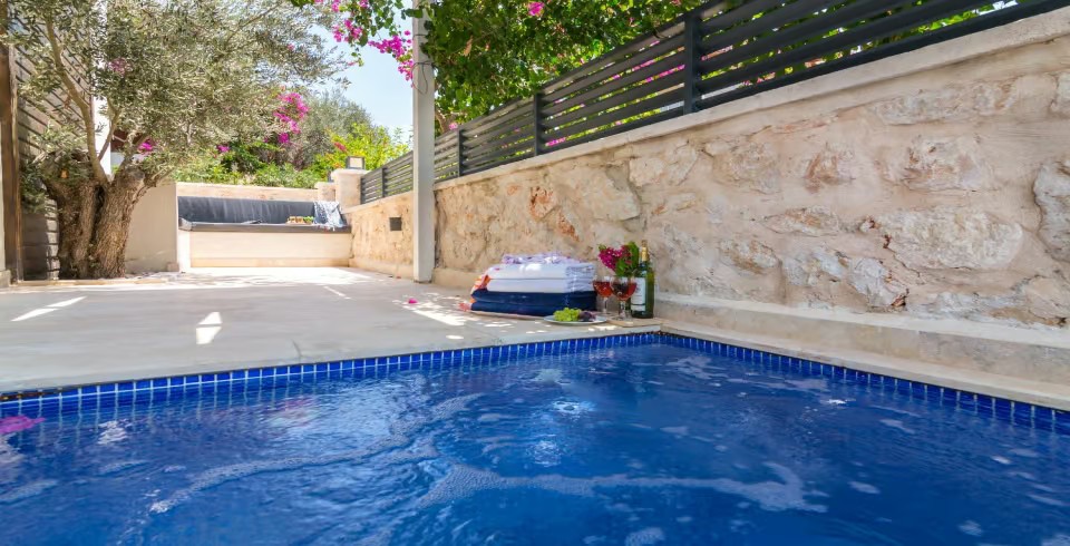 Havuz Ve Bahçe : Müthiş deniz manzarasına sahip bahçe alanında özel yüzme havuzu, şezlong, şemsiye, bahçe mobilyaları, barbekü, yemek masası, oturma alanı, salıncak, bulunmaktadır.