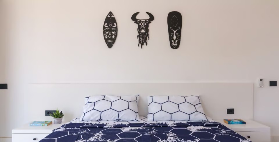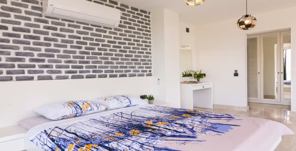 1. Yatak Odası : 1 adet çift kişilik yatak, klima, komodin, elbise dolabı, makyaj masası ve saç kurutma makinesi bulunmaktadır. Odanın tuvalet ve banyosu vardır.