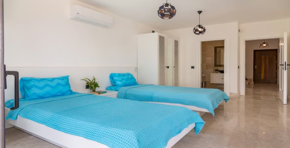 3. Yatak Odası : 2 adet tek kişilik yatak, klima, komodin, elbise dolabı, makyaj masası ve saç kurutma makinesi. Odanın tuvalet ve banyosu vardır.