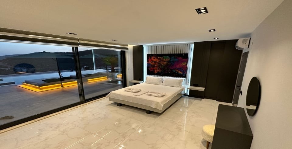 Havuz ve Bahçe: Deniz manzaralı özel yüzme havuzu, şezlong, güneş şemsiyesi, bahçe yemek masası, salıncak, bahçe oturma gruba bulunmaktadır.