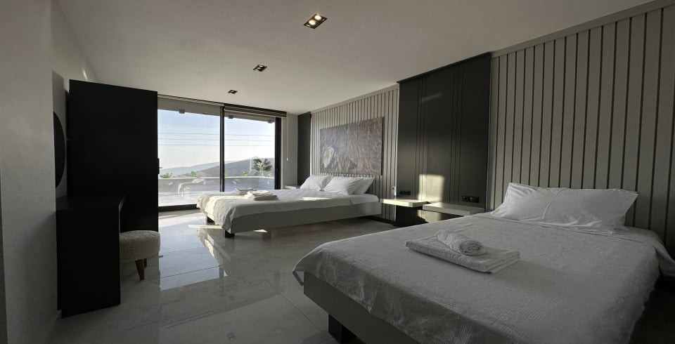 4. Yatak Odası: Bir adet çift kişilik yatak, Bir adet tek kişilik yatak elbise dolabı, komodin, klima, makyaj masası, TV ve banyo ve tuvalet bulunmaktadır.