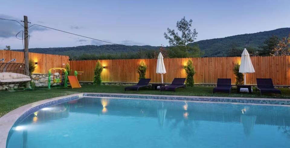 Havuz ve Bahçe: Havuz ve bahçesi korunaklı olup dışarıdan gözükmemektedir. Özel yüzme havuzu,jakuzi, şezlong, şemsiye, salıncak, çocuk oyun parkı yemek masası ve barbekü bulunmaktadır.