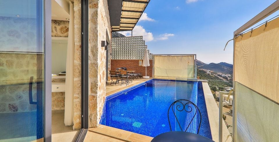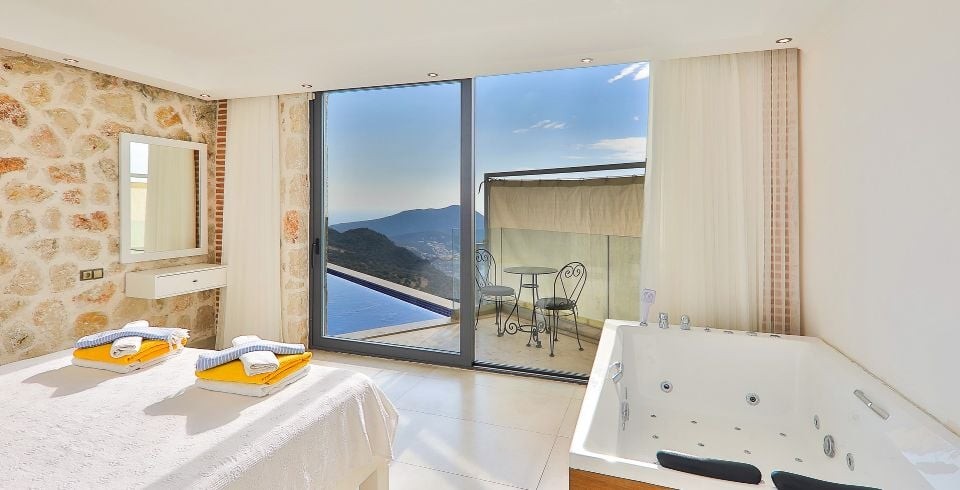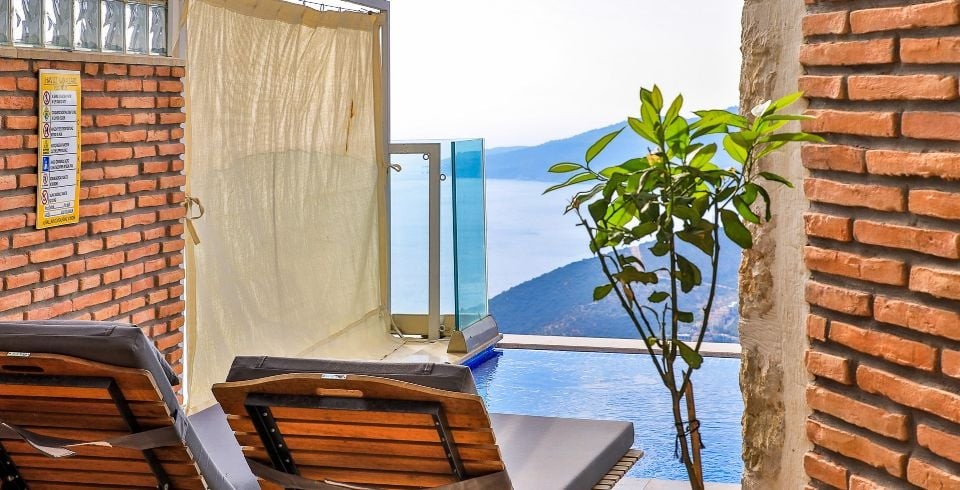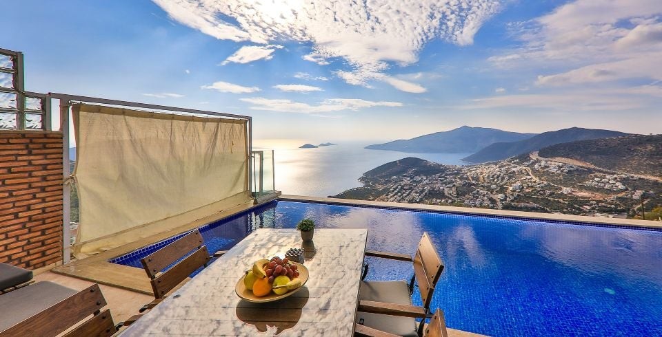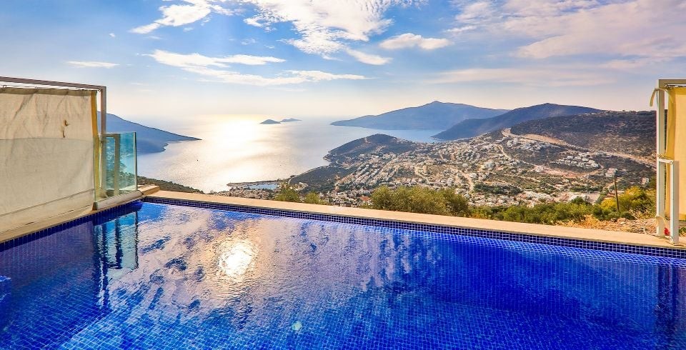 Deniz Manzaralı havuz terasından Kalkan manzarasını ve adaları rahat bir biçimde görmektesiniz. Akşam üzeri villamızdan gün batımı manzarasını kesintisiz izleyebilirsiniz.. Villa Arma Balayı villası olarak tüm çiftleri muhteşem bir tatil için beklemektedir.