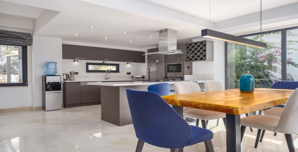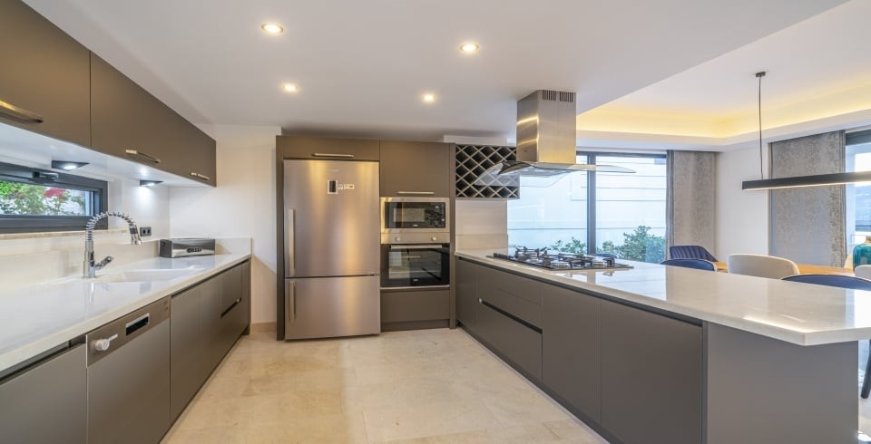 Mutfak: Son teknolojik mutfak aletleri ile dizayn edilmiş modern Amerikan tipi mutfakta yemek masası ve sandalyeler, fırın, mikrodalga kişi sayısı kadar yemek takımı, tost makinesi, tava, çay-su bardakları, tencereler ve çatal bıçak takımları mevcuttur.