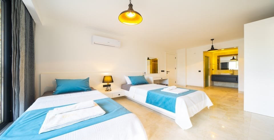 3. Yatak Odası: 2 adet tek kişilik yatak, elbise dolabı, komodin, klima, banyo ve tuvalet bulunmaktadır.