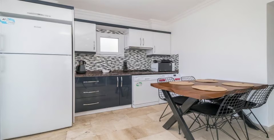 Mutfak : Villamızın  Amerikan mutfağı ile sizlere kendi evinizin mutfağı gibi hissettirecek. Ayrıca mutfakta klima, bulaşık makinası, buzdolabı, çamaşır makinası, mikrodalga fırın, Su ısıtıcısı, fırın, 4`lü ocak seti ,yemek masası ile tava tencere vb. mutfak araç gereçlerini kullanma fırsatını sizlere sunuyoruz.