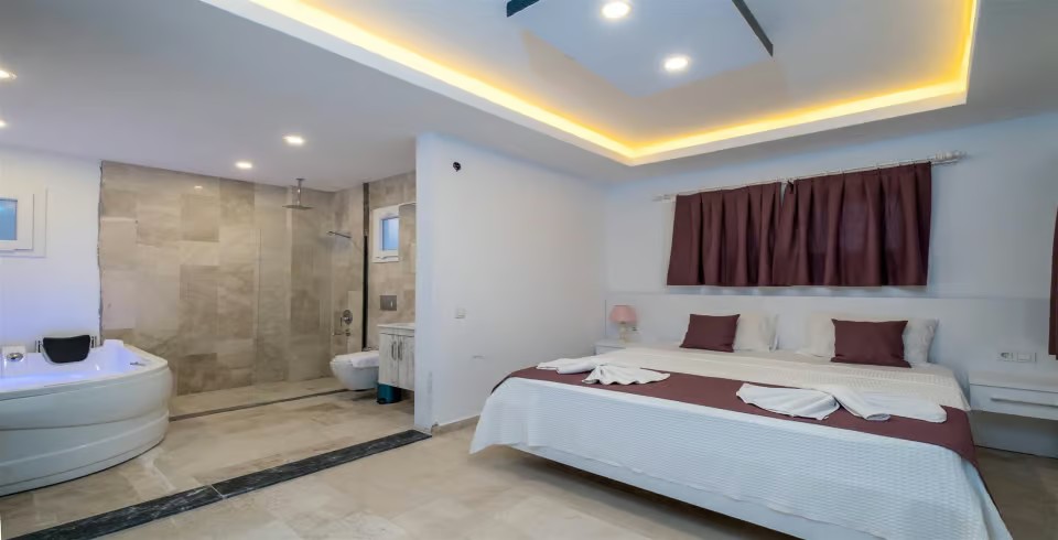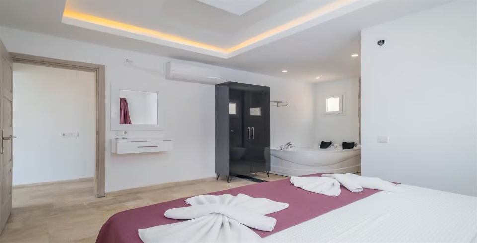 1. Yatak Odası : 1 adet çift kişilik yatak,Jakuzi,klima, komodin, elbise dolabı, makyaj masası, banyo ve lavabo bulunmaktadır.