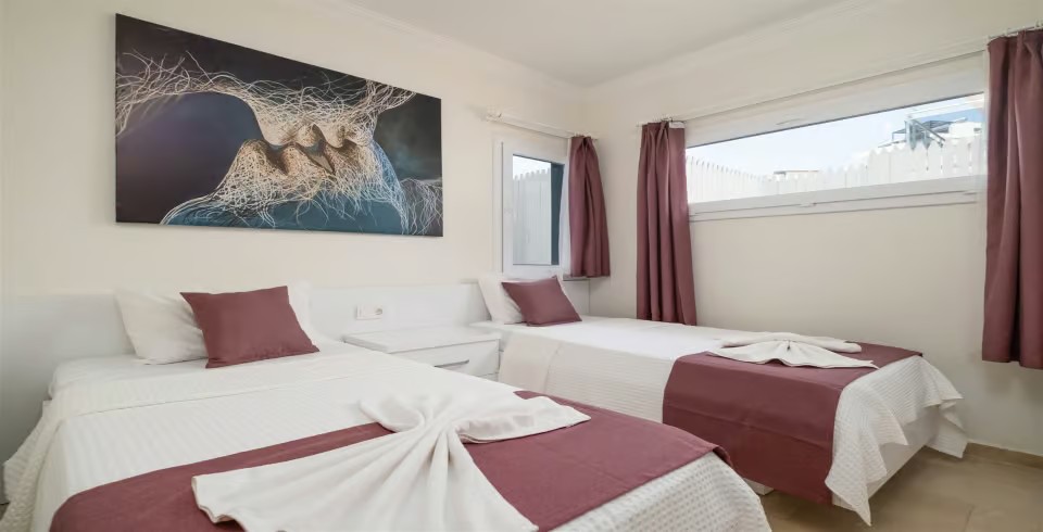 2. Yatak Odası : 2 adet tek kişilik yatak,  klima, elbise dolabı, makyaj masası, komodin, banyo ve lavabo bulunmaktadır.