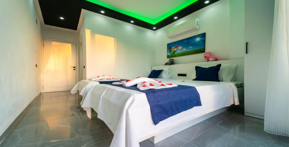 2. Yatak Odası : 2 adet tek kişilik yatak, klima, komodin, elbise dolabı, banyo ve lavabo bulunmaktadır.