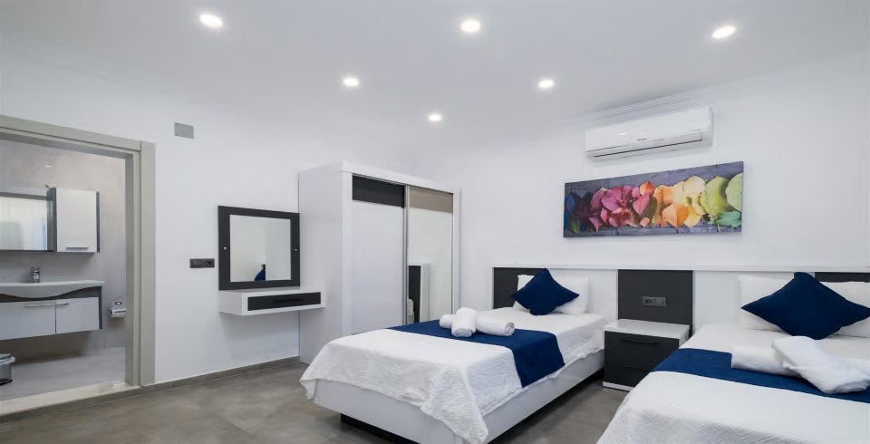 2.Yatak Odası: 2 adet tek kişilik yatak, komodin, elbise dolabı, makyaj masası, elbise dolabı, klima, banyo ve lavabo bulunmaktadır.