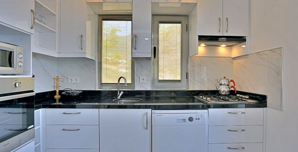 Mutfak : Kiralık Villamızın mutfağında bulaşık makinası, buzdolabı, çamaşır makinası, fırın, ocak, mikro dalga fırın, kettle, ekmek kızartma makinası, yemek masası ve 6 kişilik mutfak araç ve gereçleri bulunmaktadır.