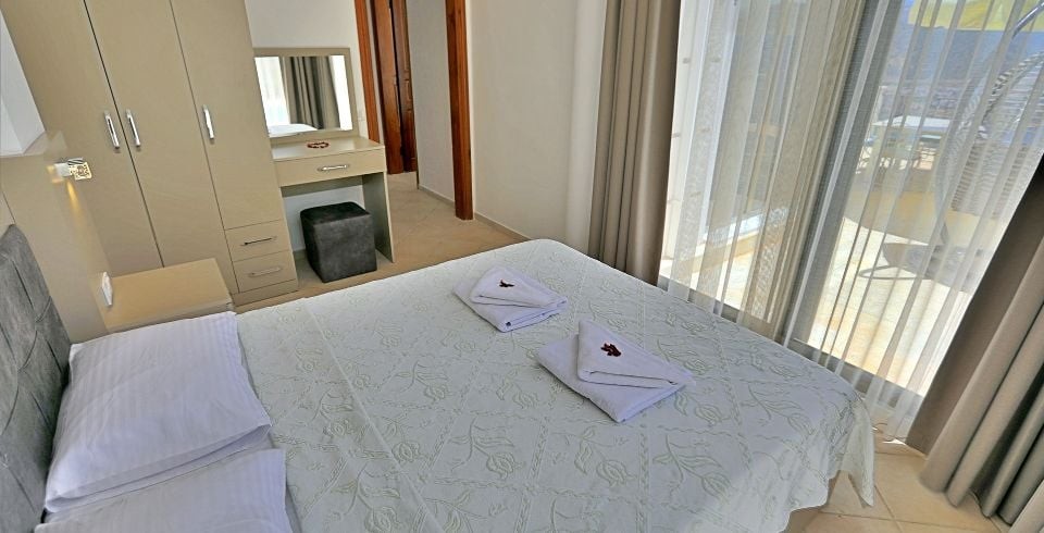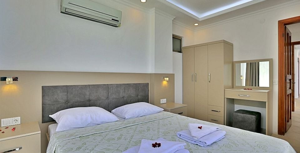 3. Yatak Odası : Çift kişilik yatak odası, klima, elbise dolabı, makyaj masası, komodin, banyo, tuvalet bulunmaktadır.