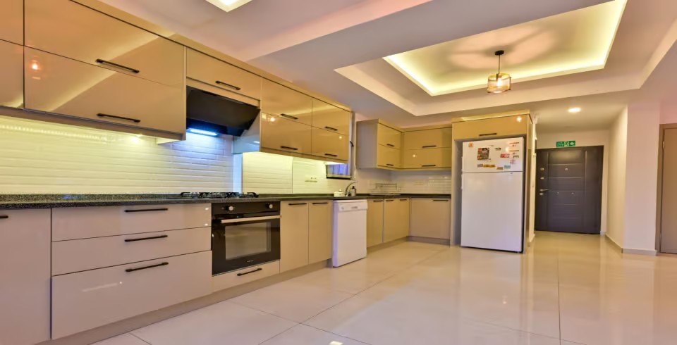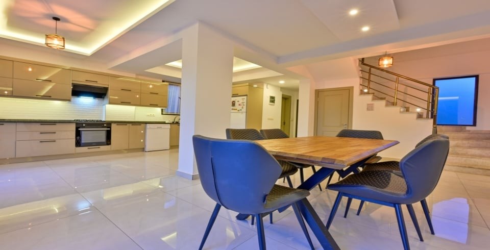 Mutfak: Açık planlı mutfak, 8 kişi ve daha fazla kişiye yetecek kadar mutfak malzemeleri, buzdolabı, fırın, ocak, mikrodalga fırın, bulaşık makinesi, çamaşır makinesi, tost makinesi, kettle ve çaydanlık bulunmaktadır..